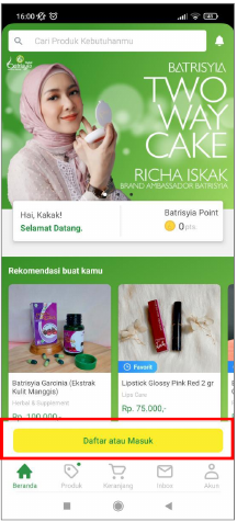 Silahkan daftar atau login terlebih dahulu untuk dapat mengakses seluruh fitur yang ada pada Aplikasi Batrisyia Store.