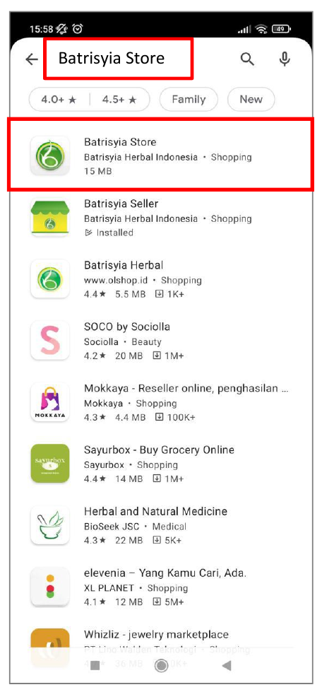 Batrisyia Store dapat di download melalui Google Play Store dengan menuliskan kata kunci pencarian “Batrisyia Store” pada kolom pencarian yang berada di bagian atas halaman Google Play Store.