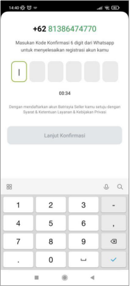 4.3. Konfirmasi akun kamu dengan memasukan nomor OTP dari Whatsapp