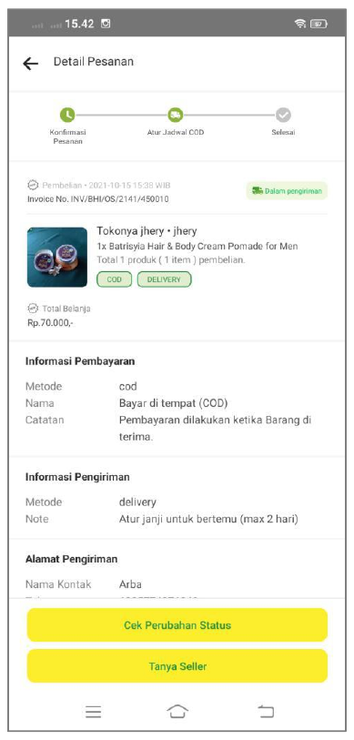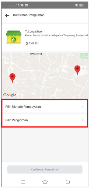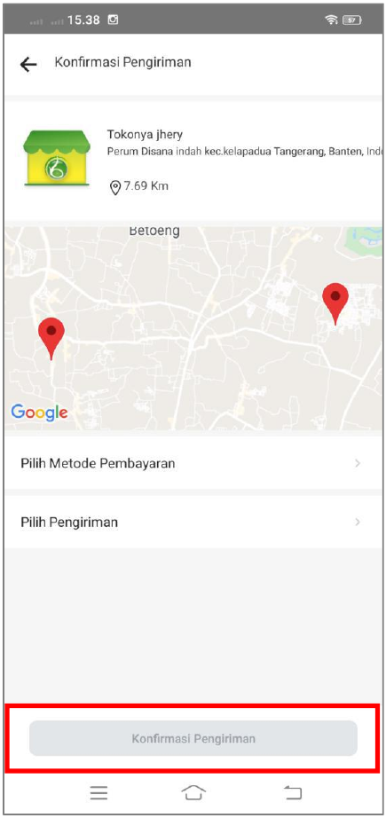 Tombol konfirmasi alamat berfungsi untuk memastikan alamat anda sudah benar dan akan diteruskan ke tahap pencarian Seller.