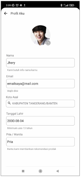 Halaman Profil berisi tentang informasi data diri pengguna Aplikasi Batrisyia Store. Lakukan Update data profil untuk menunjang kelancaran dalam bertransaksi, mulai dari foto profil, tempat tanggal lahir, jenis kelamin, detail lokasi dan alamat tempat tinggal anda.