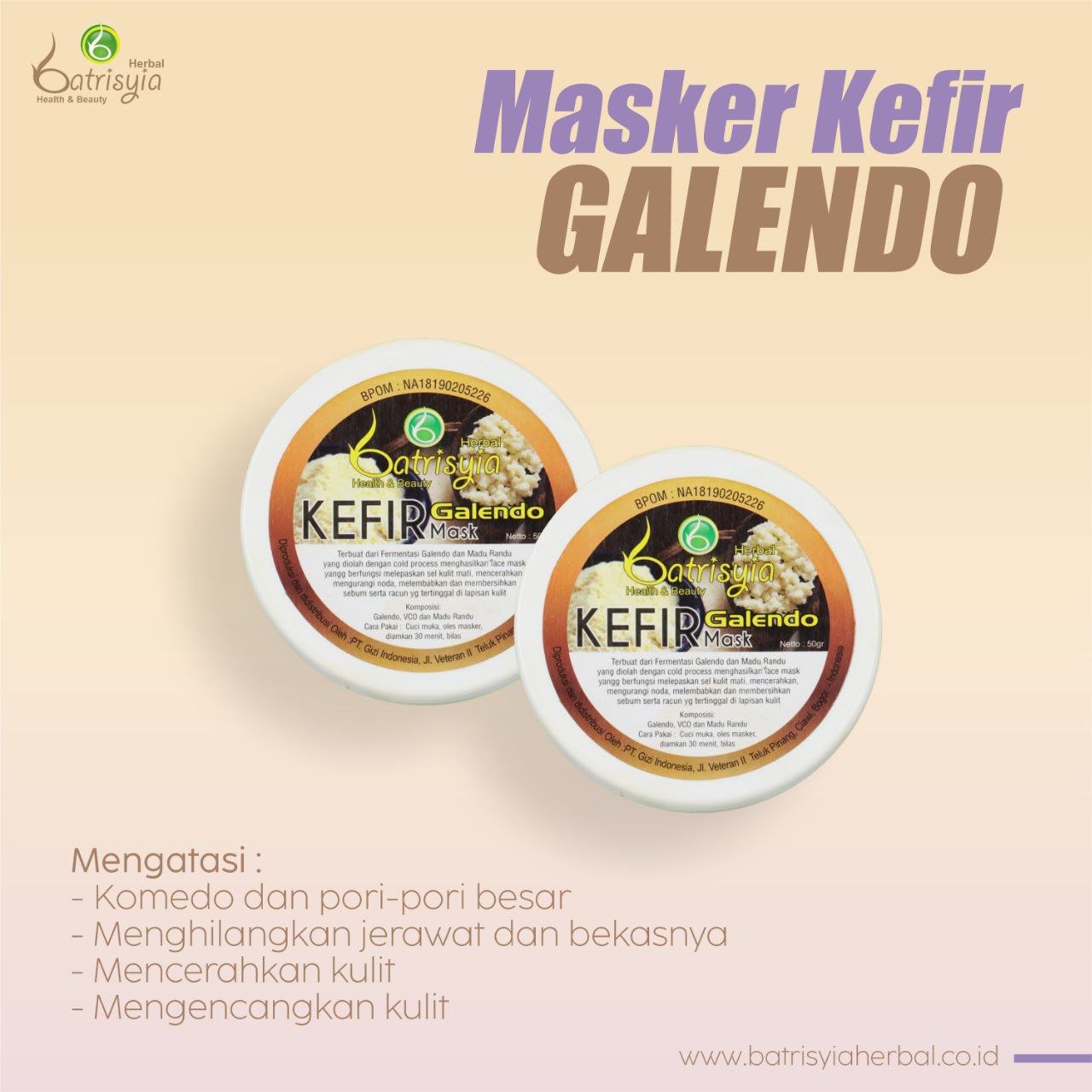Batrisyia Masker Kefir Galendo yang diformulasikan dari Kefir, Galendo dan Madu Murni sangat efektif untuk membersihkan kulit dari paparan merkuri, mampu mengatasi jerawat dan bruntusan, mengecilkan pori-pori, mencerahkan kulit wajah dan mengatasi penuaan dini.