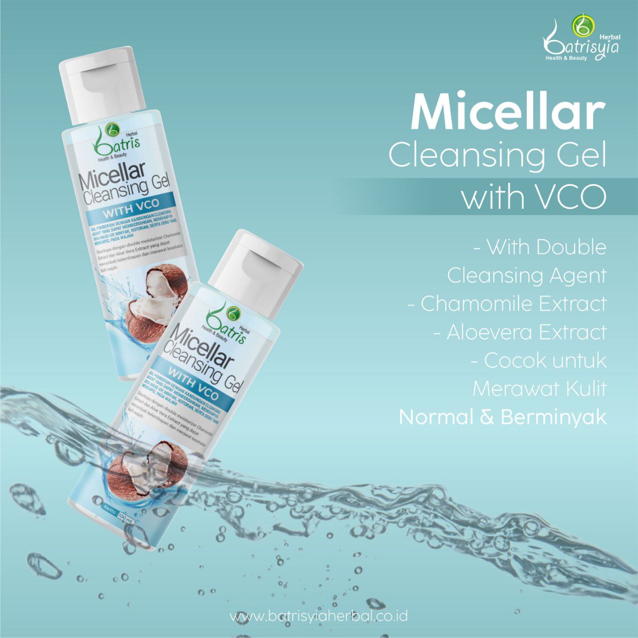 Batrisyia Micellar Cleansing Gel juga diperkaya dengan Double Moisturizer yang melembapkan kulit serta mampu membunuh kuman yang menempel pada kulit wajah.