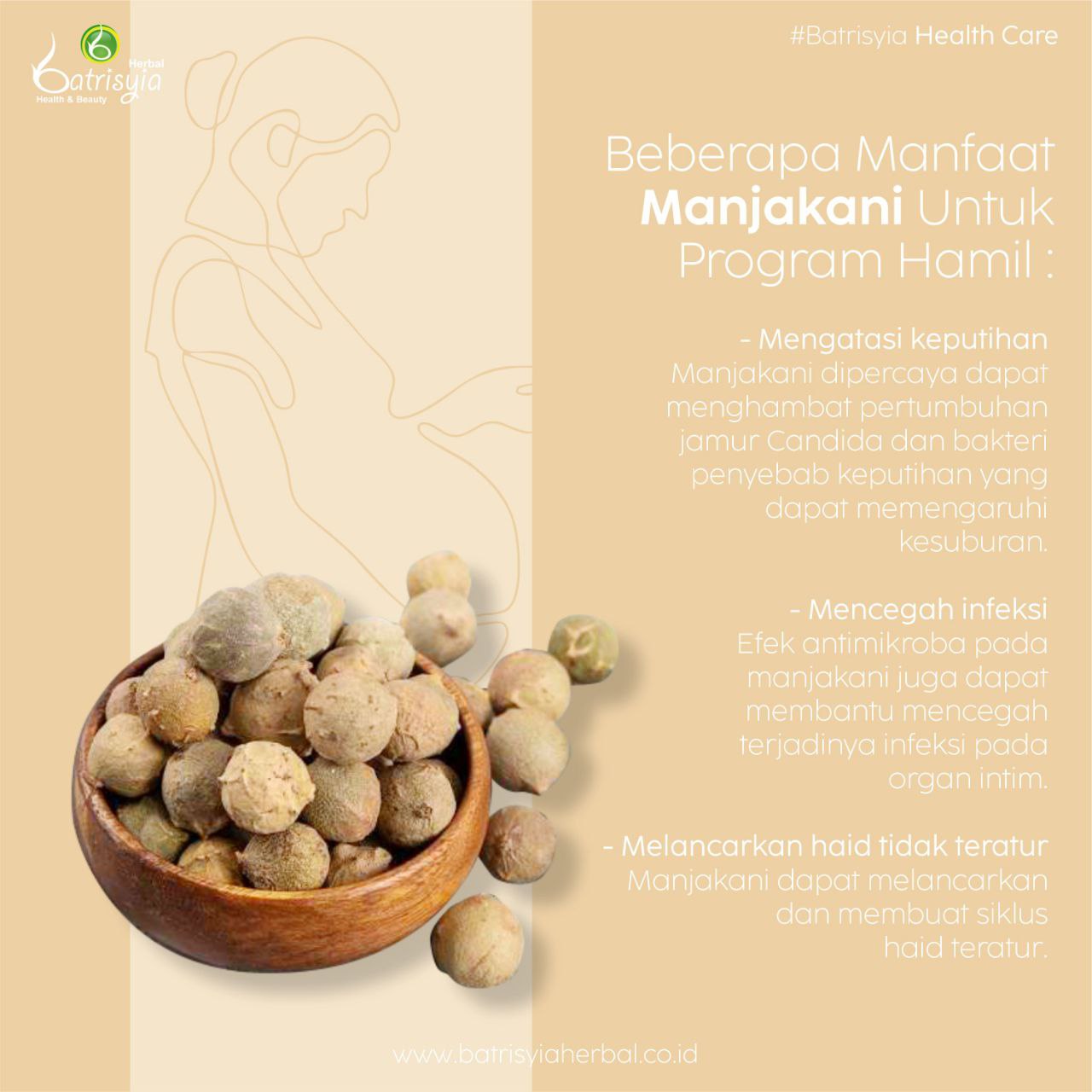 Apa sajakah manfaatnya itu? Yuk cek postingan berikut ini! Nah, kalian dapat menemukan manfaat manjakani di produk Batrisyia Feminim Manjaan yang terbuat dari 100% Buah Manjakani, yang pastinya telah diproses secara higienis.