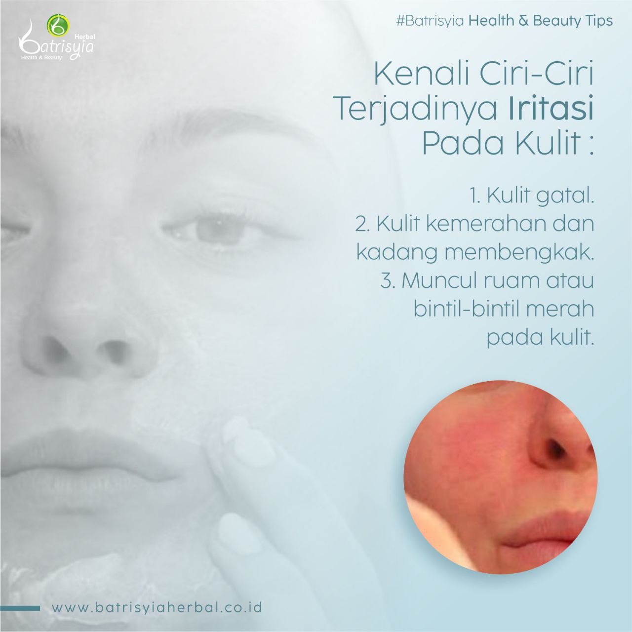 Dan kamu juga bisa menggunakan produk perawatan Batrisyia Herbal yang memiliki sifat Antiinflamasi.