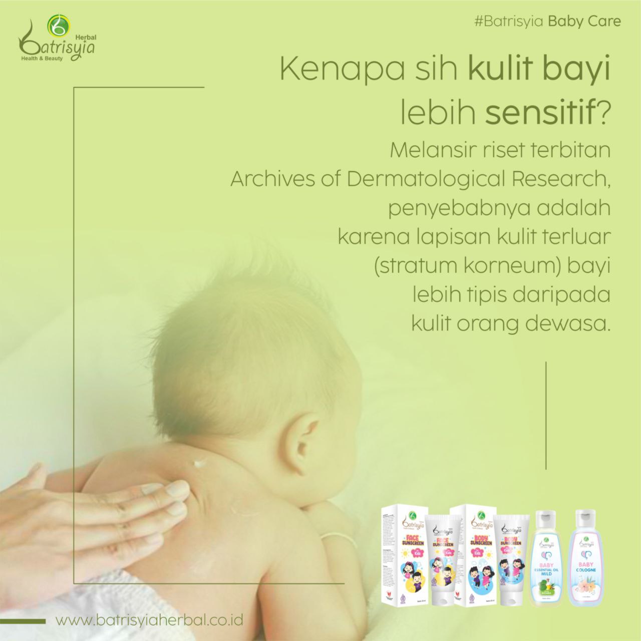 Yap! Karena bayi memiliki kulit rentan dan sensitif. Karena itu, Batrisyia Herbal hadirkan perawatan Baby Care untuk merawat dan melindungi kulit sensitif si Kecil.