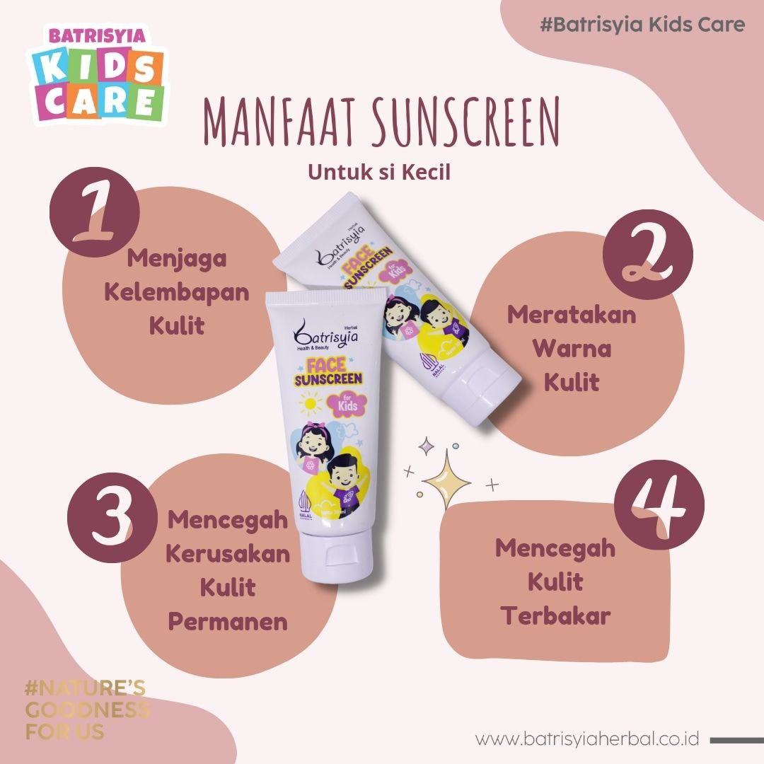 Nah, baiknya lagi jika menggunakan Batrisyia Face Sunscreen for Kids kulit tak hanya terlindungi dari paparan sinar matahari, tetapi mampu memberikan nutrisi pada kulit anak, yang menjadikan kulit lebih halus, lembap dan sehat.