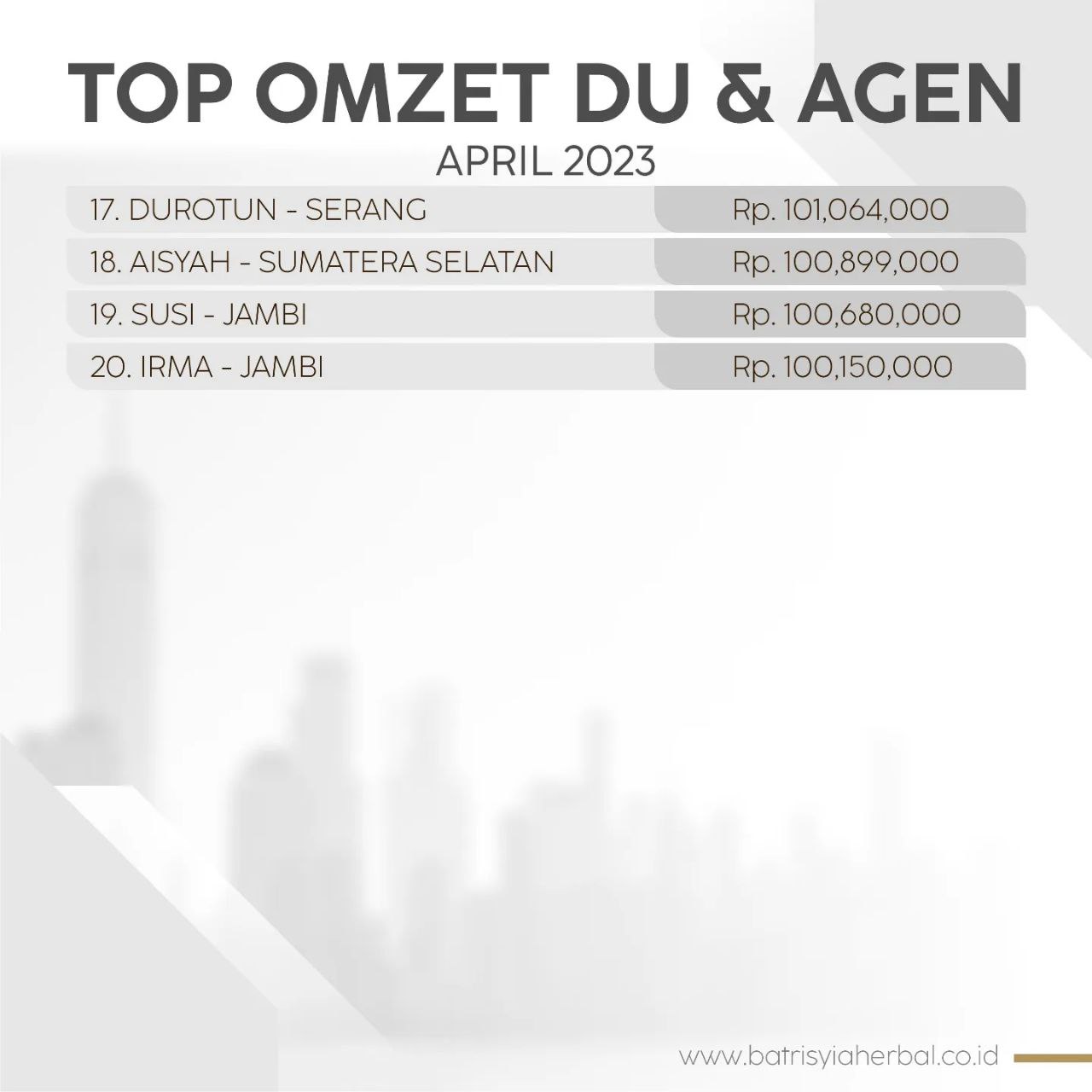 TOP OMZET DISTRIBUTOR & AGEN BULAN APRIL 2023