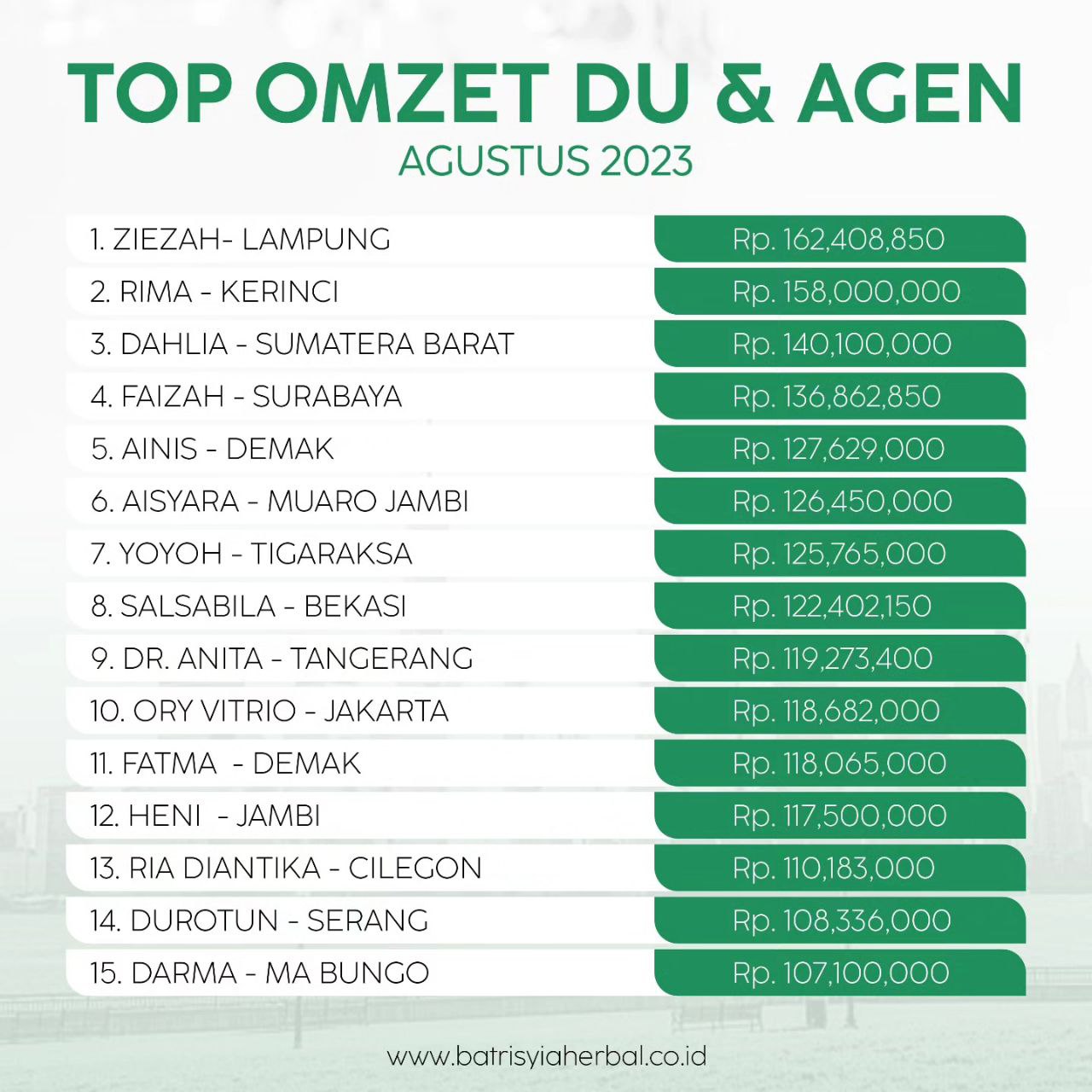 TOP OMZET DU & AGEN BULAN AGUSTUS 2023
