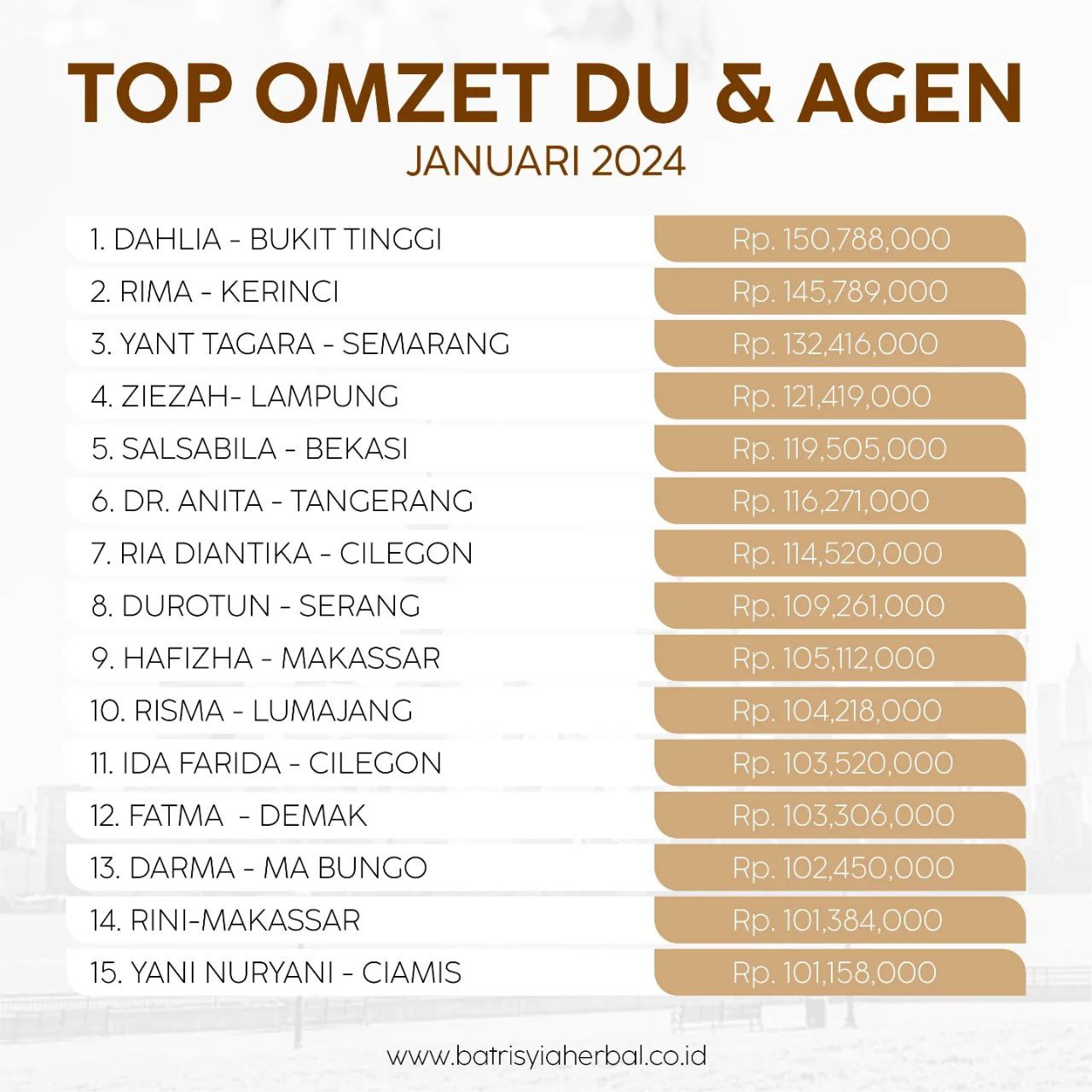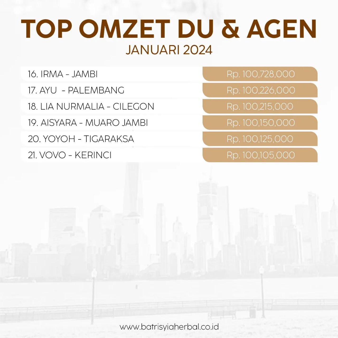 TOP OMZET DU & AGEN BULAN JANUARI 2024