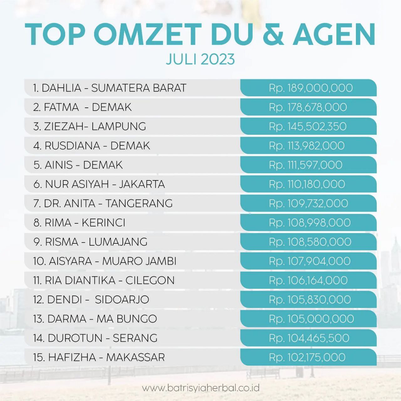 TOP OMZET DU & AGEN BULAN JULI 2023