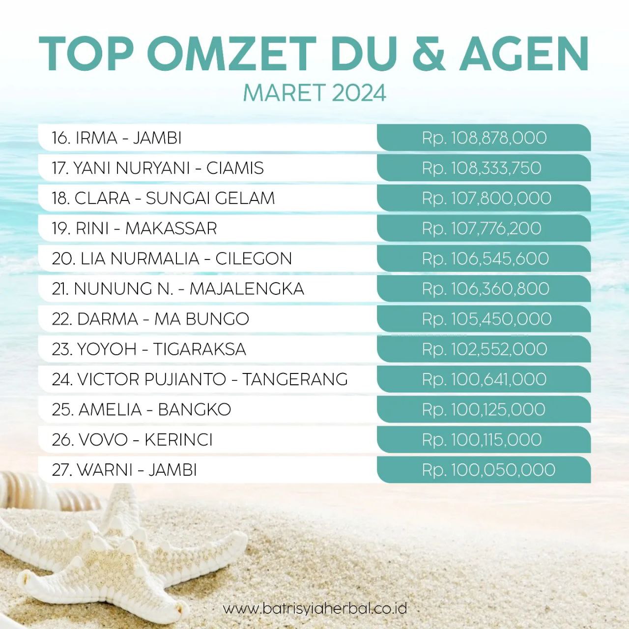 TOP OMZET DU & AGEN BULAN MARET 2024