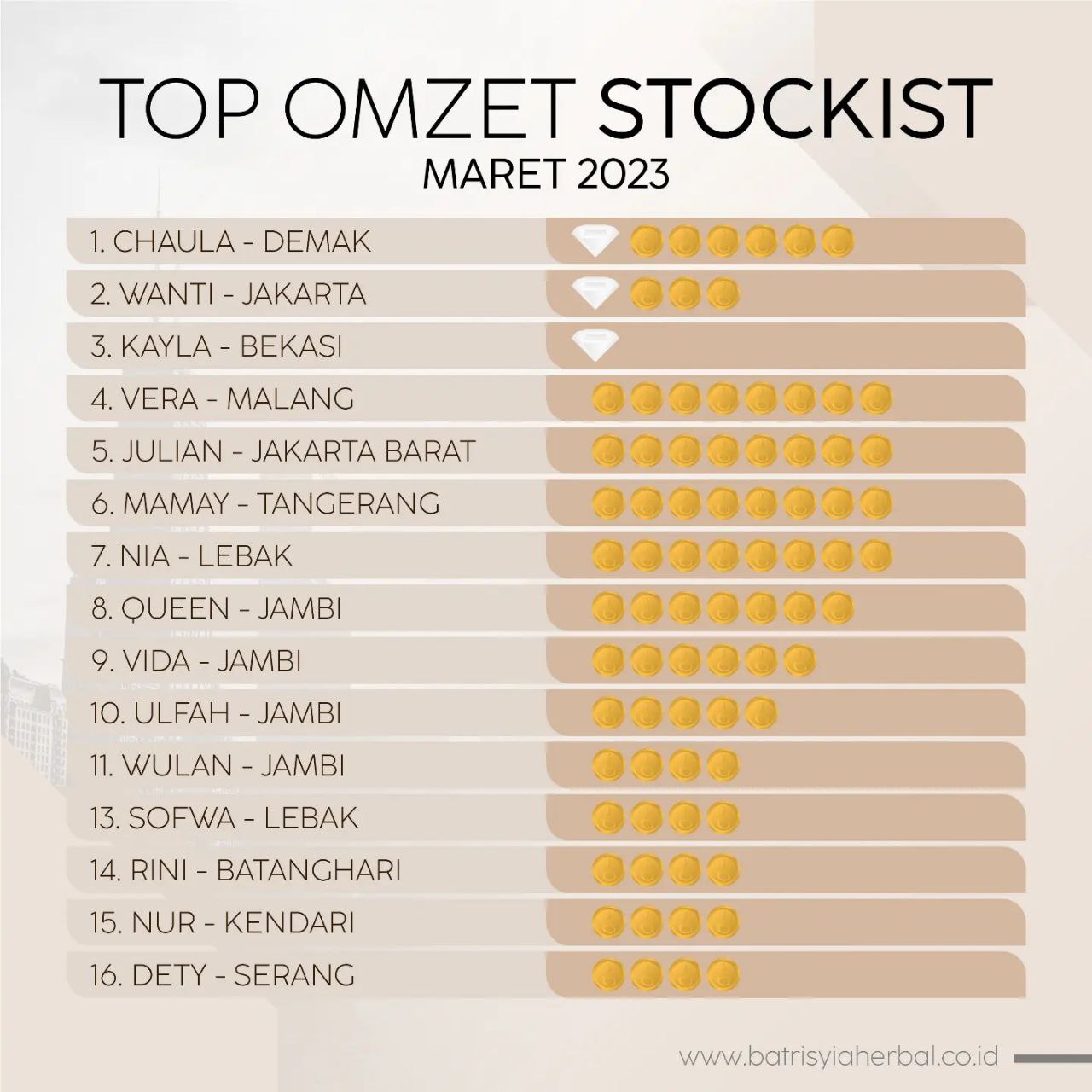 TOP OMZET STOCKIST BULAN MARET 2023